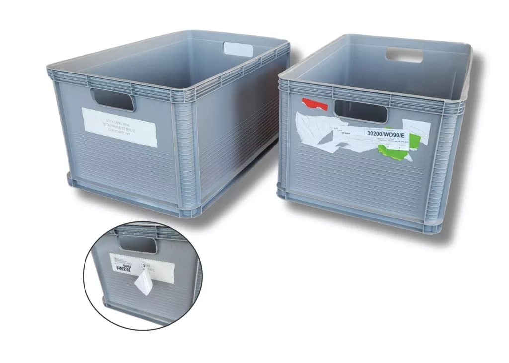 Zazwyczaj wszelkie etykiety aplikowane są z trwałym przeznaczeniem, tak aby ich okres przydatności był jak najdłuższy. Zdarzają się jednak procesy, w których etykiety są aplikowane na krótki okres czasu, a następnie są zdejmowane i zastępowane nowymi. Takim przykładem są np. pojemniki transportowe KLT, wykorzystywane na etapie produkcji, w transporcie artykułów medycznych, branży logistycznej czy automotive, jako etykiety VDA.
