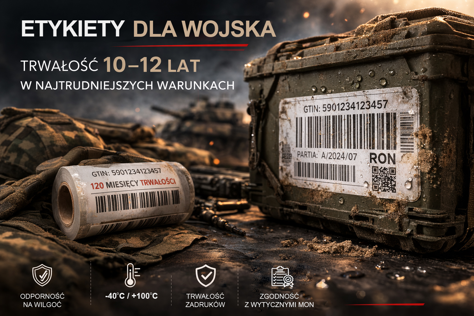 Etykiety stosowane w logistyce wojskowej muszą wytrzymać znacznie więcej niż standardowe oznaczenia magazynowe. Produkty dla wojska mogą być przechowywane przez wiele lat, transportowane w różnych warunkach klimatycznych i wielokrotnie obsługiwane w łańcuchu dostaw.